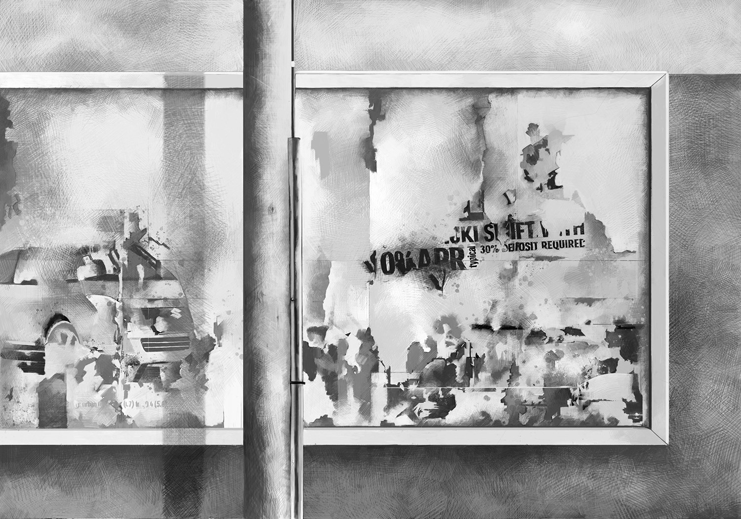 Drawings from journeys in and around the Mancunian Way Flyover, Manchester.
